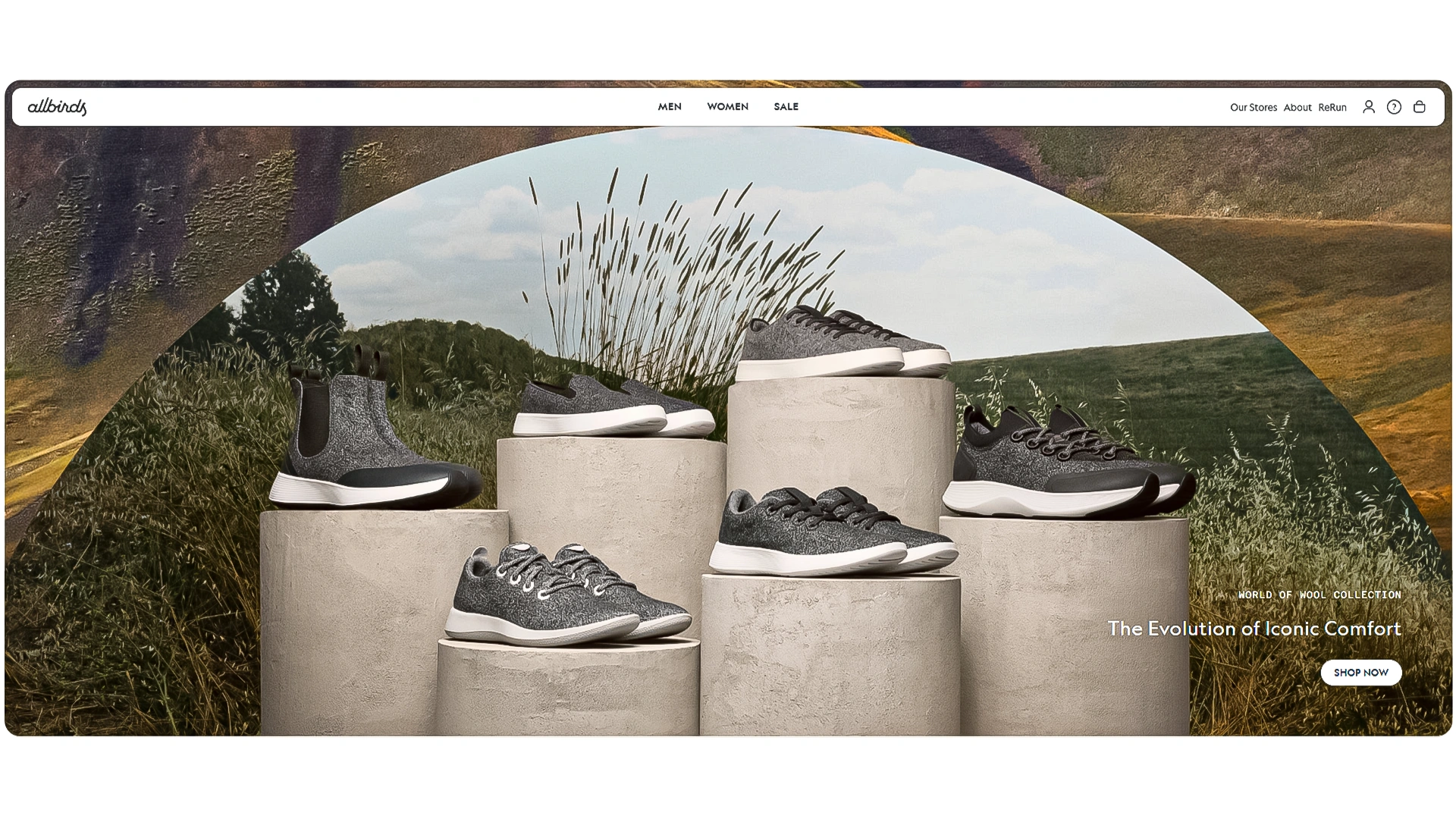 Пример: бренд Allbirds (экокроссовки) использует адаптивный, чистый, визуально «воздушный» сайт, где визуал не мешает покупке, а помогает. Сайт рассказывает не только о товаре, но и о ценностях бренда (устойчивое развитие, комфорт).