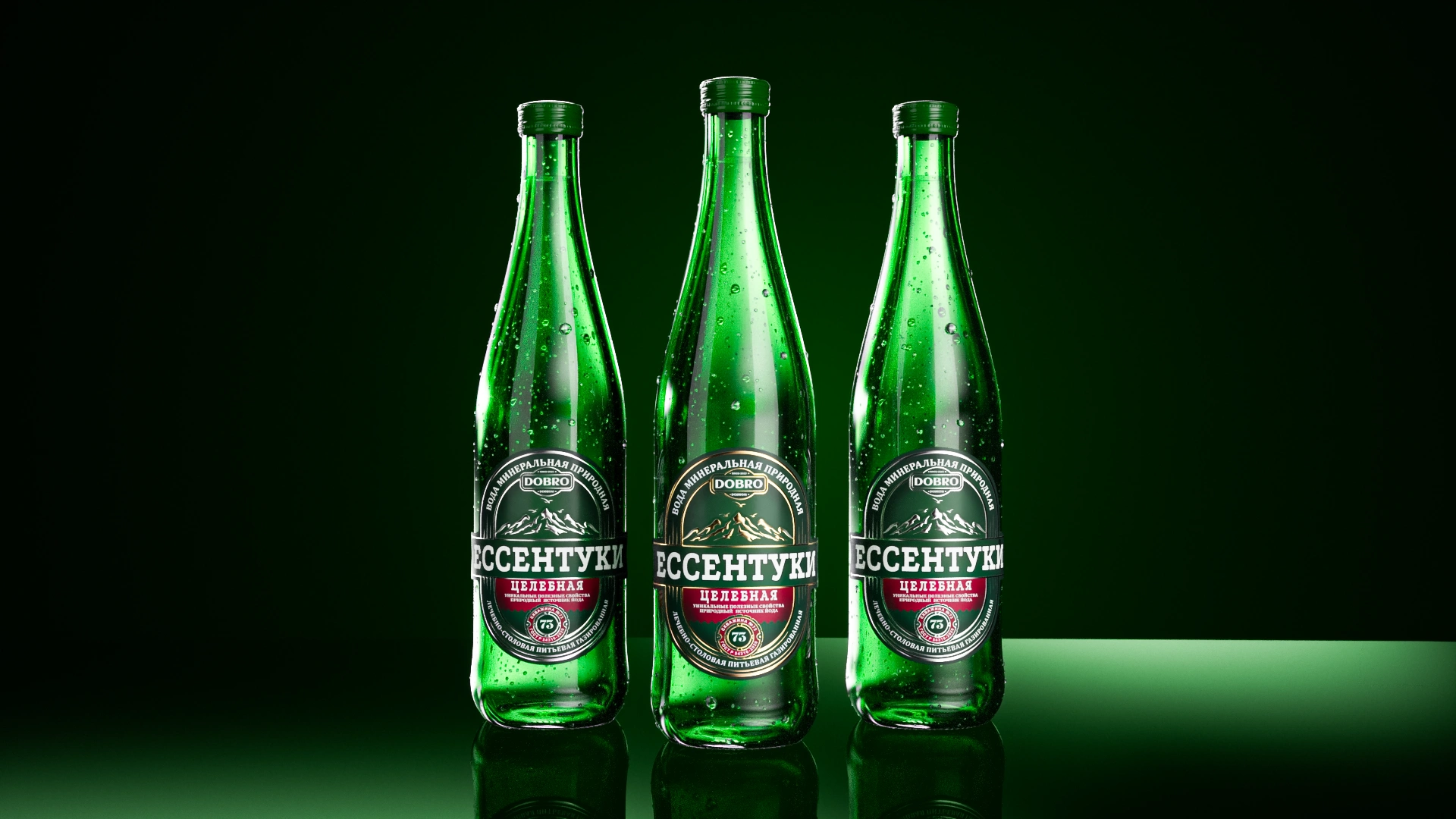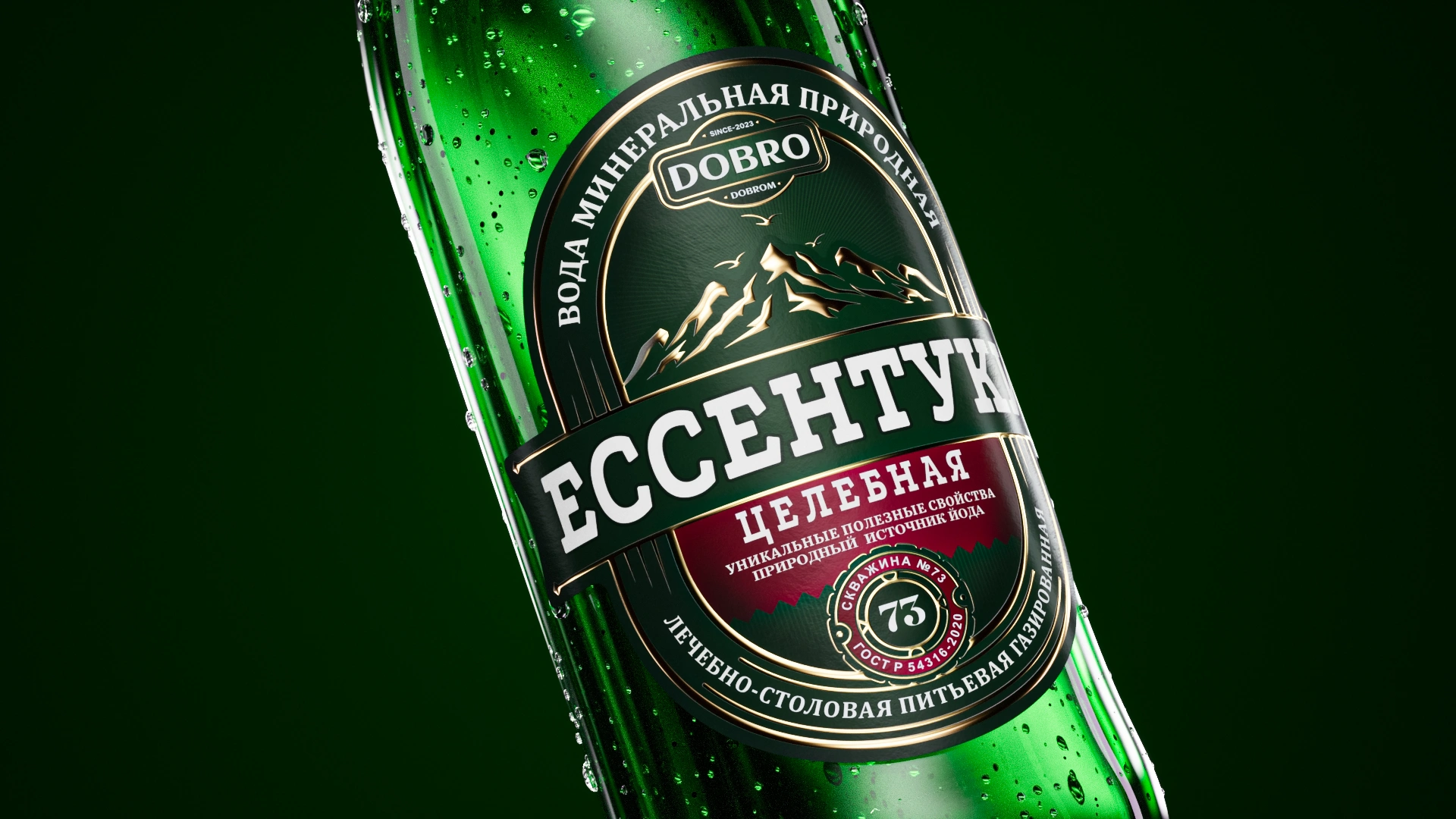 “埃森图基”包装设计以自有品牌 (Private Label) 形式在乌兹别克斯坦市场进行了本土化调整。解决方案:金色线条、凹凸效果、保留传统,并整合了“善行善报”(Dobro Dobrom) 标志,以提升高端感和信任度。