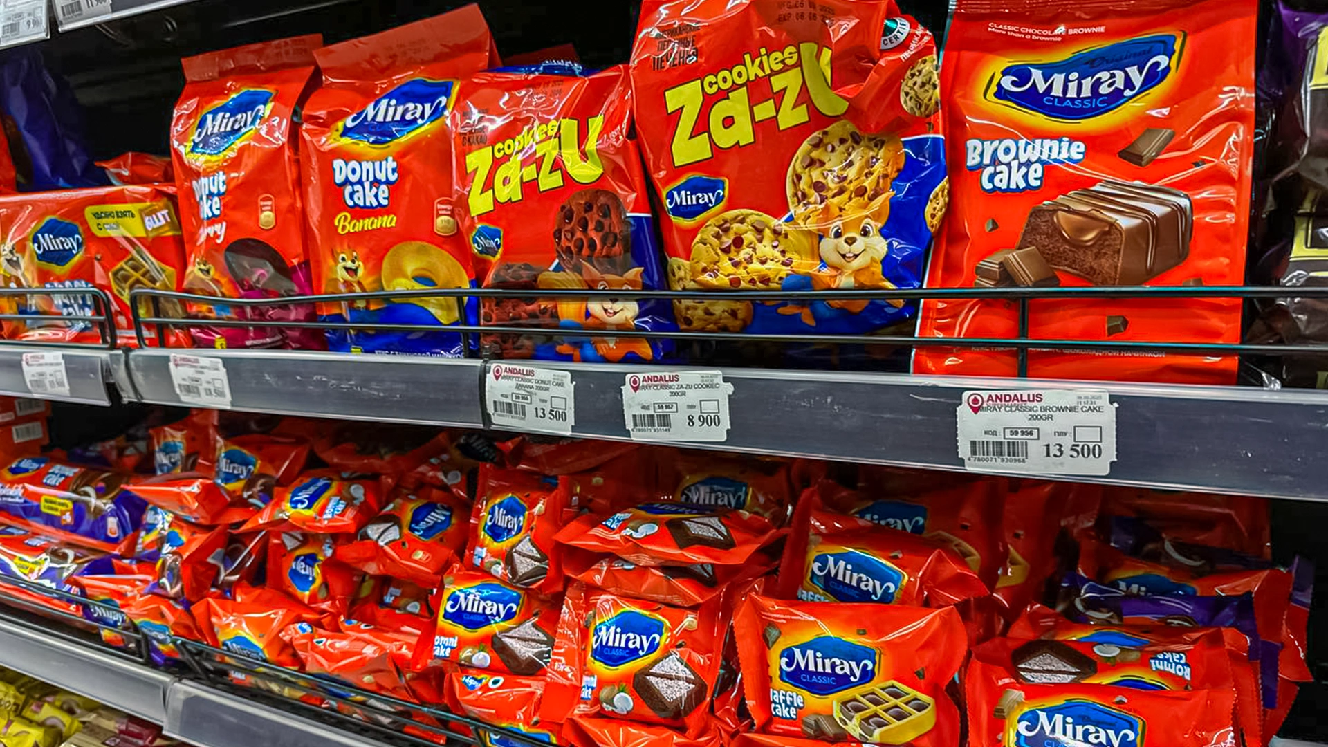 我们为 Miray 糖果工厂打造了完整的品牌形象:采用亮橙色包装设计和可爱的松鼠吉祥物。该策略帮助品牌在市场巨头(Roshen、Yashkino)中脱颖而出,并与塔什干的 112 家合作伙伴建立了合作关系。
