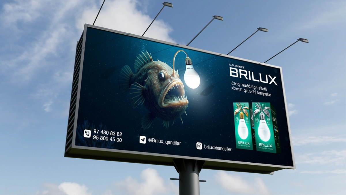 - Отобразили форму лампы как плод на ветке, создав визуальную метафору.