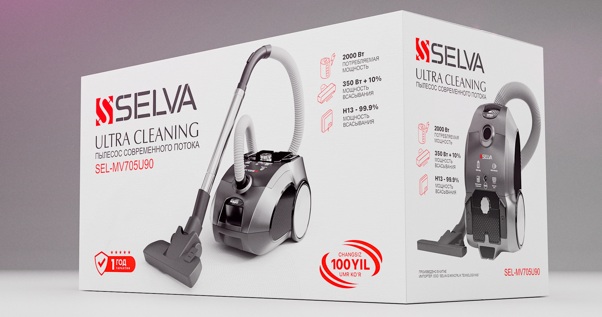 Перед нами стояла задача разработать упаковку для линейки пылесосов SELVA, которая: