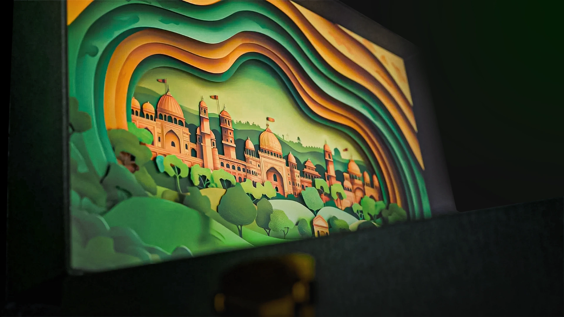 Используя ассоциации: Бабур → Эпоха Возрождения → Свет → История, которая оживает. Так родилась идея «World of Bobur» — целого мира, заключенного в цилиндре.