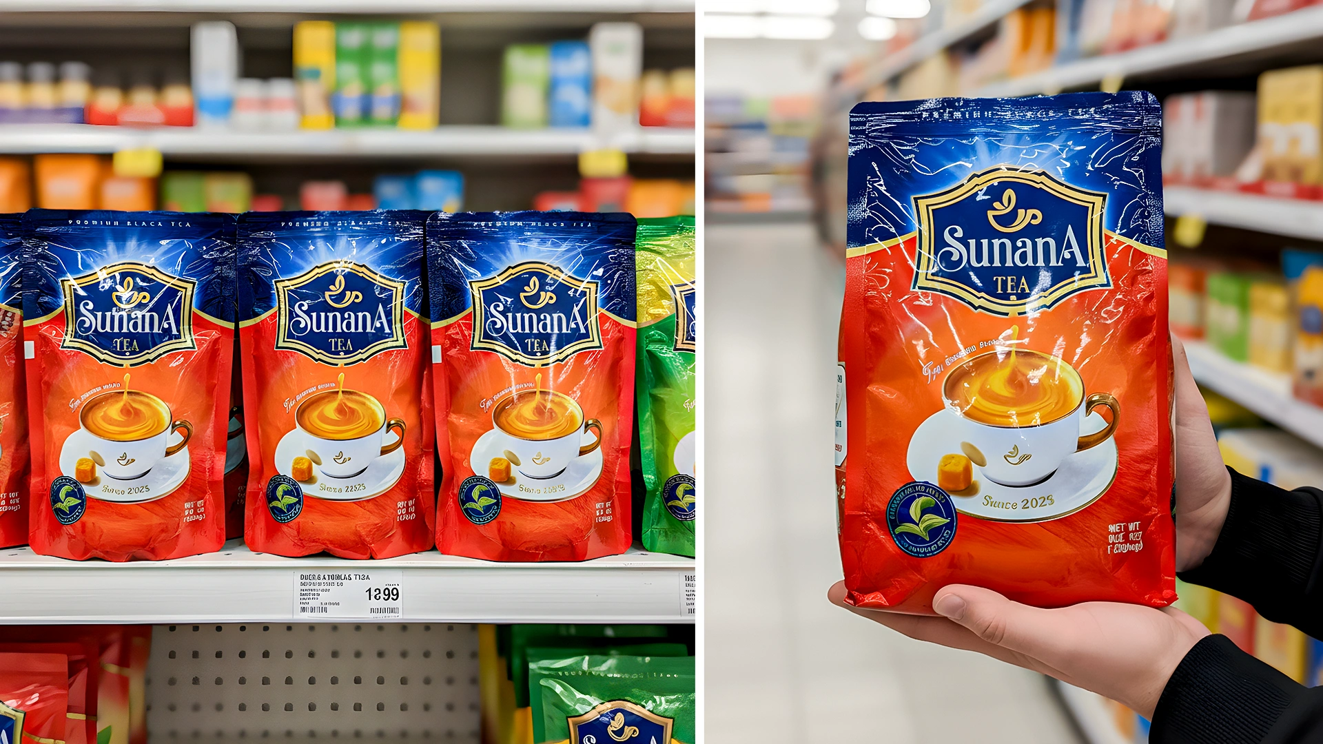 Sunana стал брендом, который выделяется в мире чая благодаря уникальному дизайну — ярким акцентам, эффекту пятна и интересного логотипа, создающего атмосферу тепла. Зиплок-пакеты с их практичностью гарантируют свежесть и натуральность.