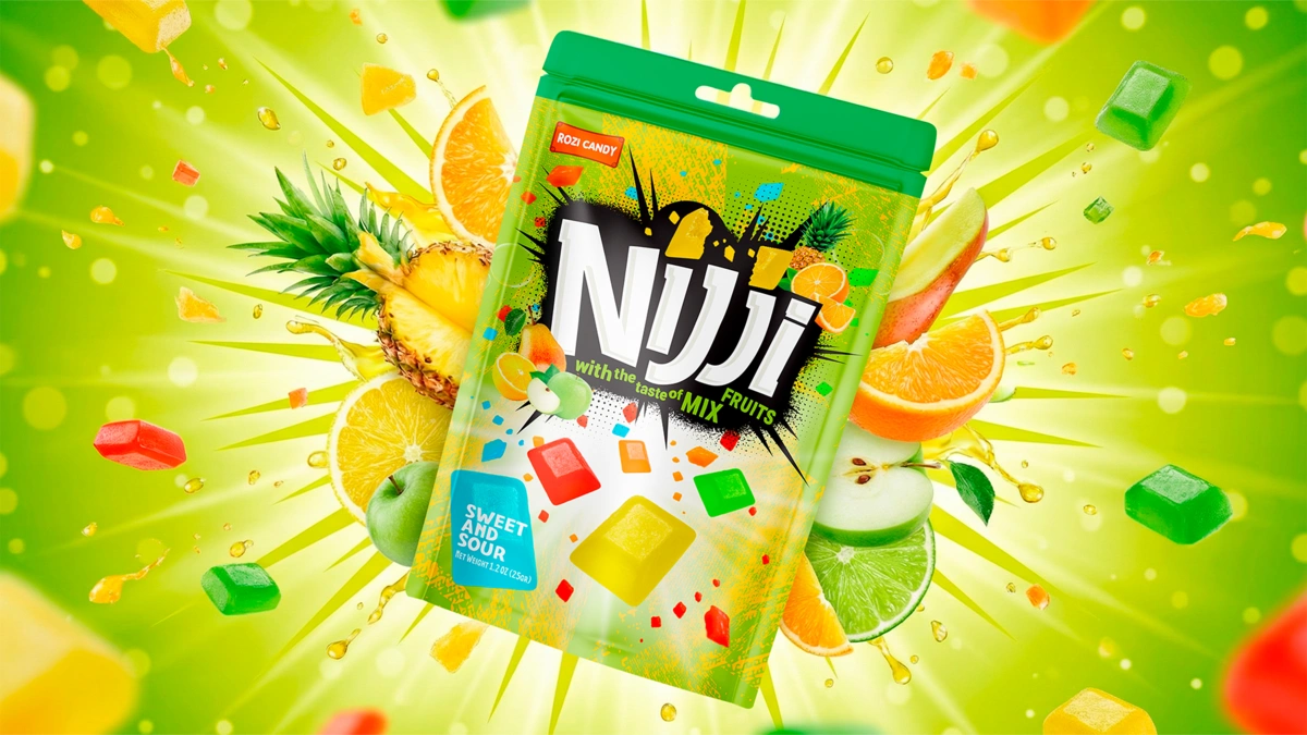 Опираясь на исследования, мы дали продукту новое имя — Nijji. В переводе с японского это означает «радуга». Имя идеально передает суть: конфеты дарят такую же яркую палитру вкусов и ароматов, как цвета радуги.